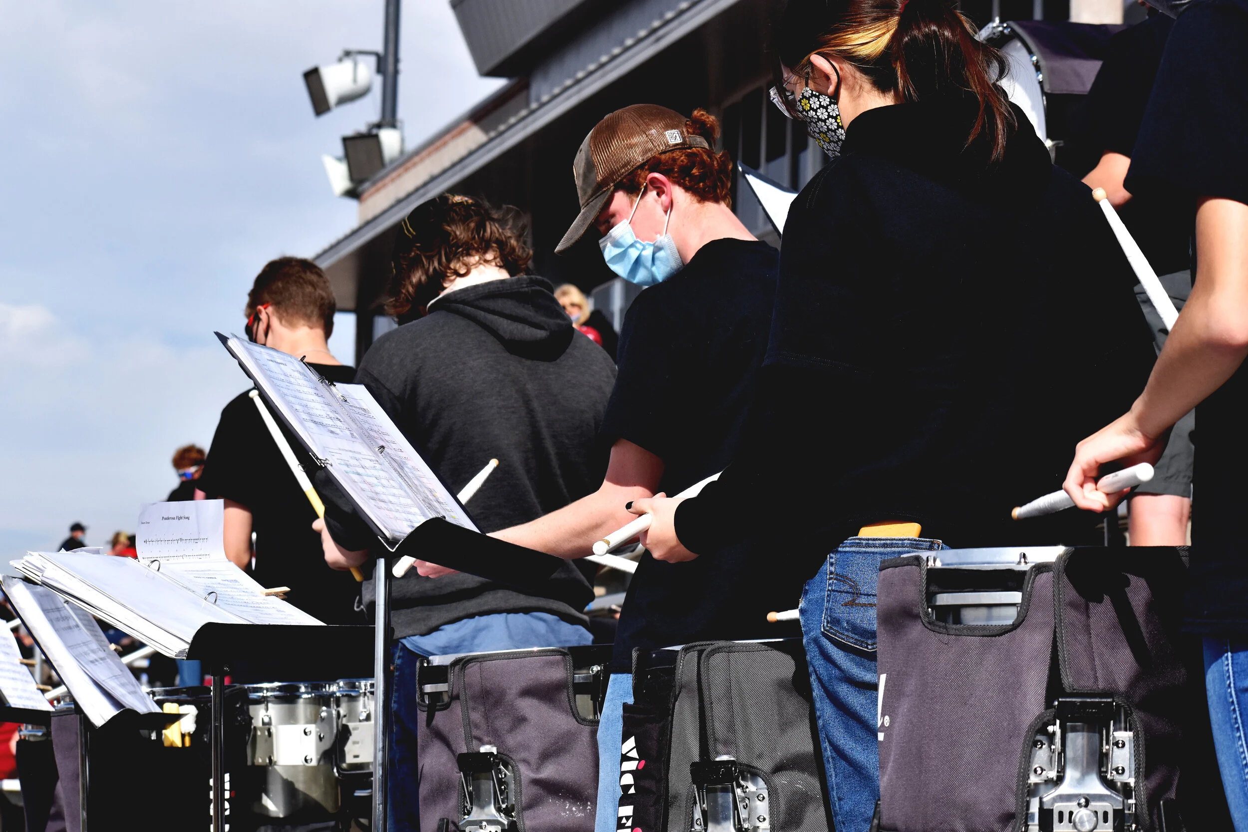 Winter Percussion is an extracurricular ensemble at Ponderosa, open to any students who wish to play a percussion instrument. The PHS Winter Percussion Ensemble has a long history of excellence and has been RMPA State Finalists numerous times. Winter Percussion won 1st Place in the 2019 RMPA State Competition and 2nd Place at the 2002 National Championship.